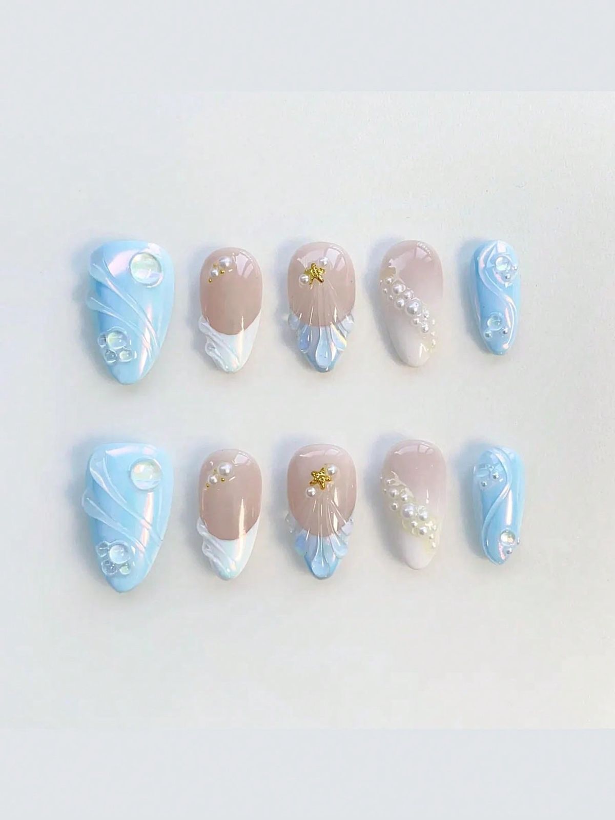 #bluenails #nailart #presson #pressonnails #nailartist #flowernails